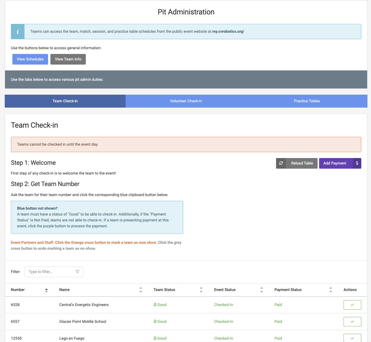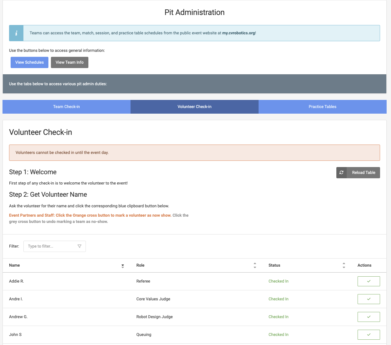 - Public / Team Agendas, Volunteer Role Based Agendas, plus Match / Judging Session times embedded per Team / Volunteer Role