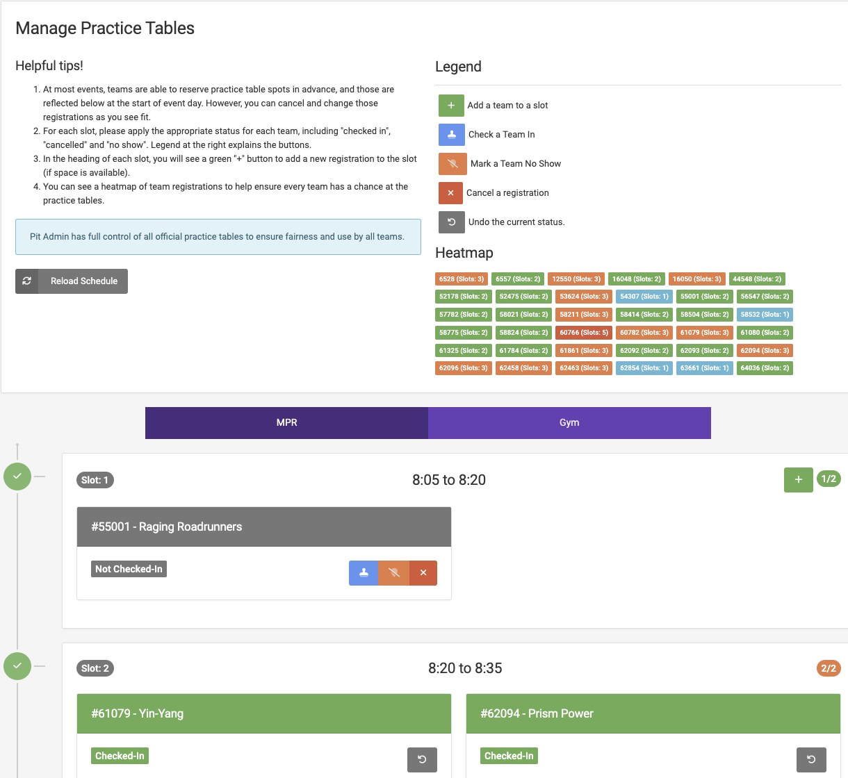 - First-come-first-served based: registration opens at a configured time and those teams that sign up first get the first slots available