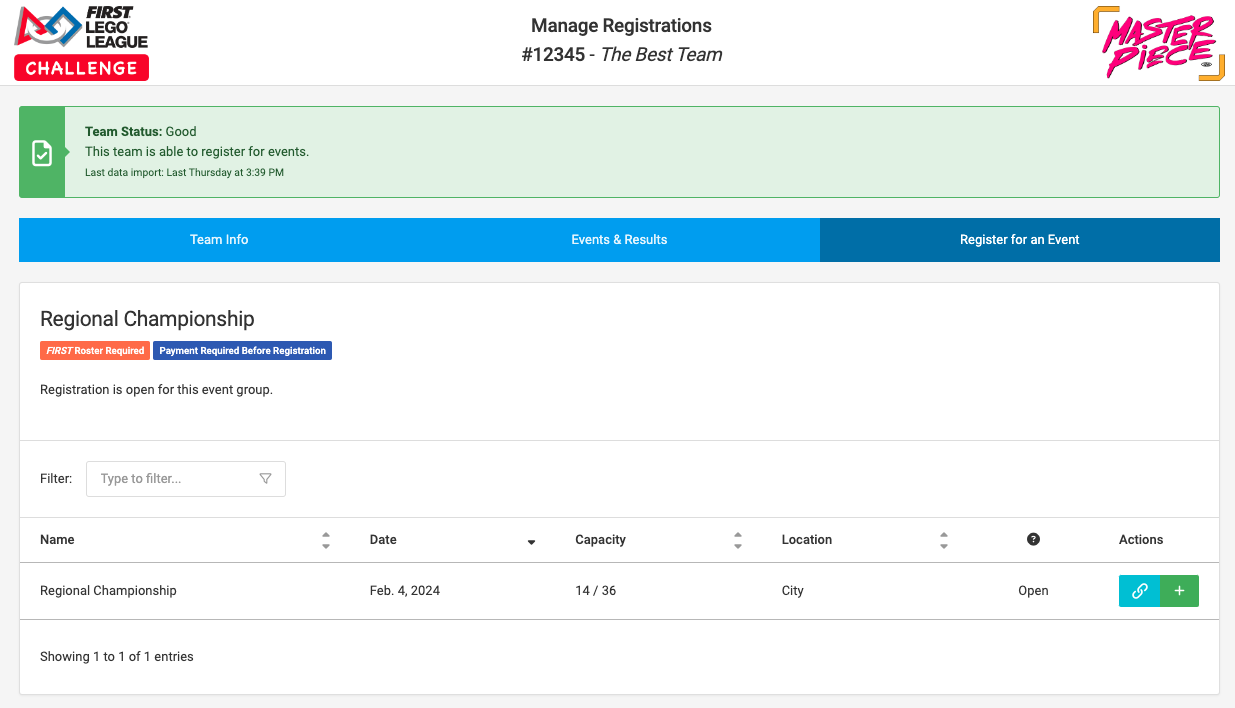 - Once a team is marked advanced, Lumieos will automatically show advancement registration opportunities